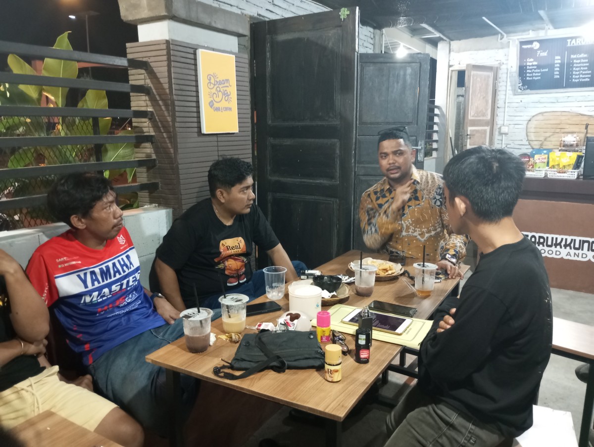 Ketua Panitia Perbasi Sulbar Cup I 2024, Khalil Qibran rapat bersama panitia, Minggu 10 November, malam, di salah satu cafe di Mamuju.