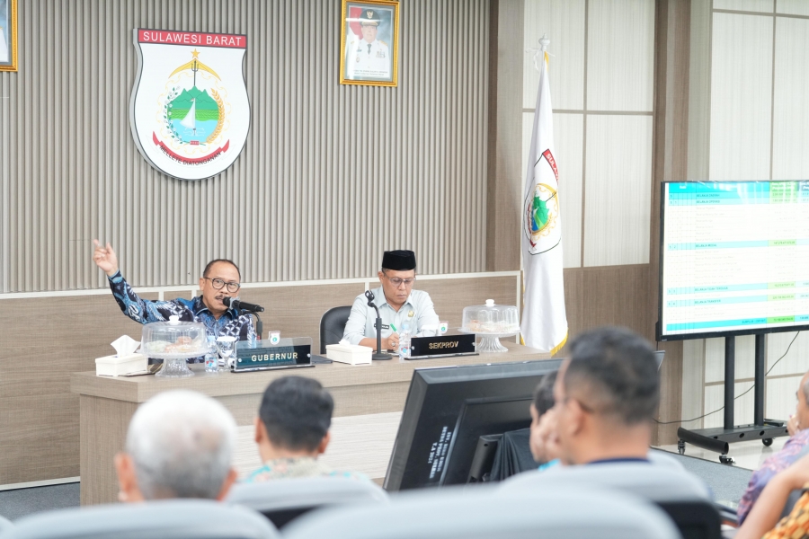 Mamuju, Mesakada.com – Gubernur Sulbar Suhardi Duka memimpin rapat pimpinan bersama Kepala Organisasi Perangkat Daerah (OPD) di kantor Gubernur, Jumat 14 November 2025.