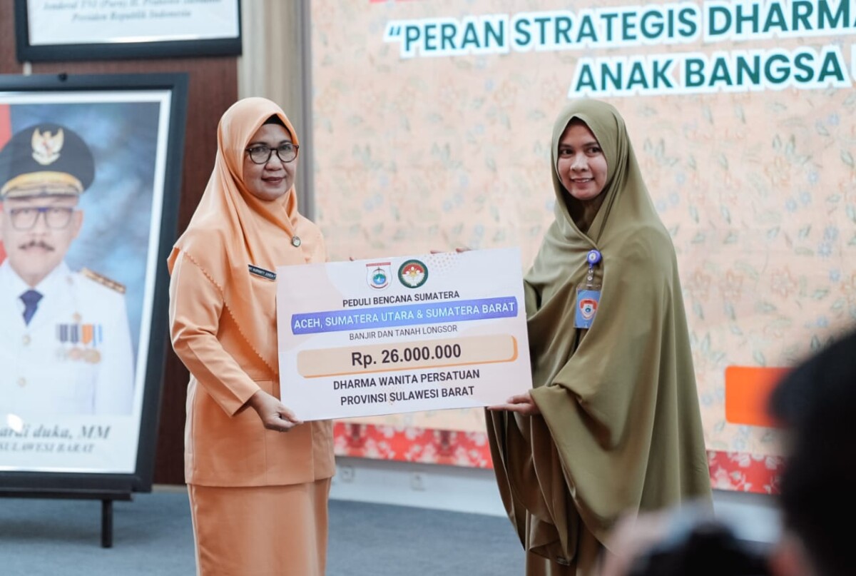 Hal tersebut disampaikannya saat sambutan pada acara Puncak Peringatan Hari Ulang Tahun (HUT) ke-26 Dharma Wanita Persatuan (DWP) Provinsi Sulawesi Barat di Ballroom Andi Depu lantai 3 Kantor Gubernur Sulbar, Senin 15 Desember 2025.