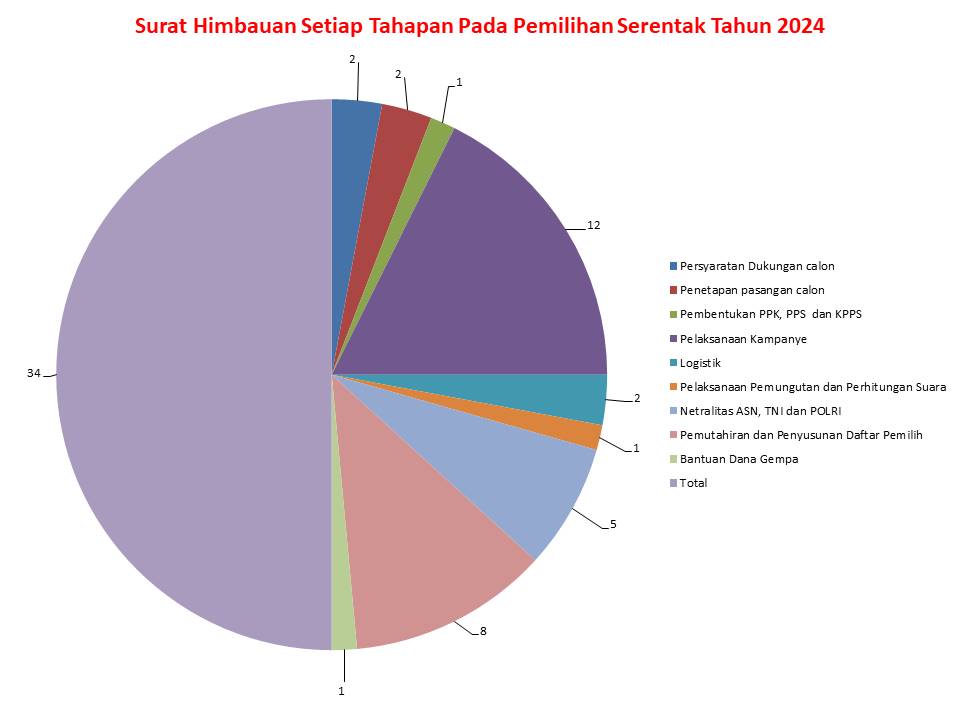 - Pelaksanaan Pemungutan dan Penghitungan Suara mencatat 2 surat imbauan, menunjukkan perhatian khusus pada tahap inti Pemilihan untuk memastikan keakuratan dan transparansi proses pemungutan serta penghitungan suara.