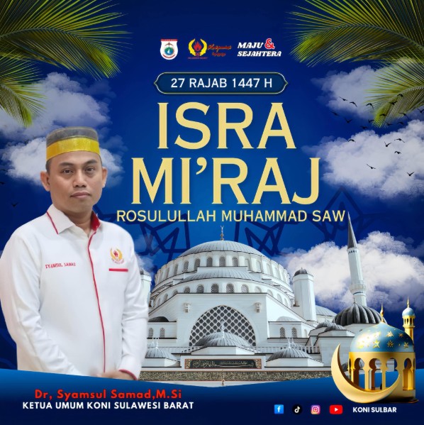 Mamuju, Mesakada.com – Komite Olahraga Nasional Indonesia (KONI) Sulawesi Barat (Sulbar) mengucapkan selamat memperingati Isra Mi’raj Rasulullah Muhammad SAW 27 Rajab 1447 Hijriah.