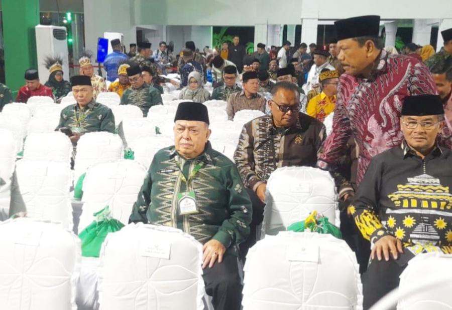 Acara pembukaan berlangsung meriah di arena utama yang dihiasi dekorasi bertema islami modern. Ornamen kaligrafi berwarna emas berpadu dengan pencahayaan lembut menciptakan suasana khidmat dan penuh keagungan.